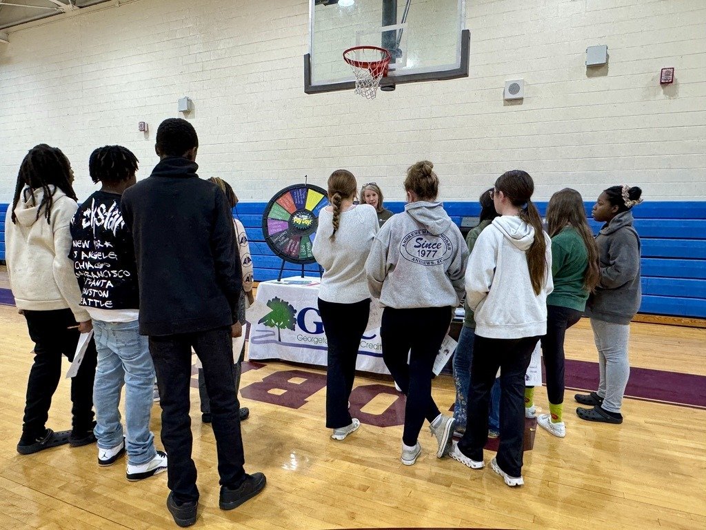 Serving in our community can look different every day. From serving donuts as a PTO volunteer (Georgetown Middle) to donating teddy bears to the Sheriff's Dept. to teaching kids money management at a career fair (Rosemary Middle), you can be sure your credit union will be there.